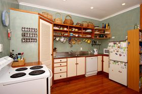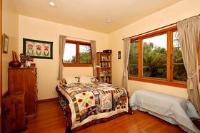 The yard is private and peaceful and dabbled with shade and as well as the north facing home there are two separate single garages.