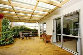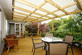 The home has fantastic outdoor flow from the lounge, a modern kitchen, double garaging with the added bonus of a sleep-out with a toilet and shower, a good sized flat section which accommodates family and pet lovers.
