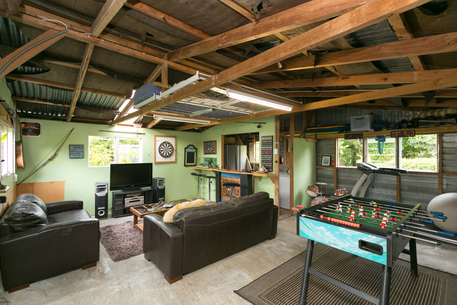 Beside the house there is a double garage sized shed, perfect for a games room or man cave zone. For the vehicles there is garaging for 3, adjacent to the house.