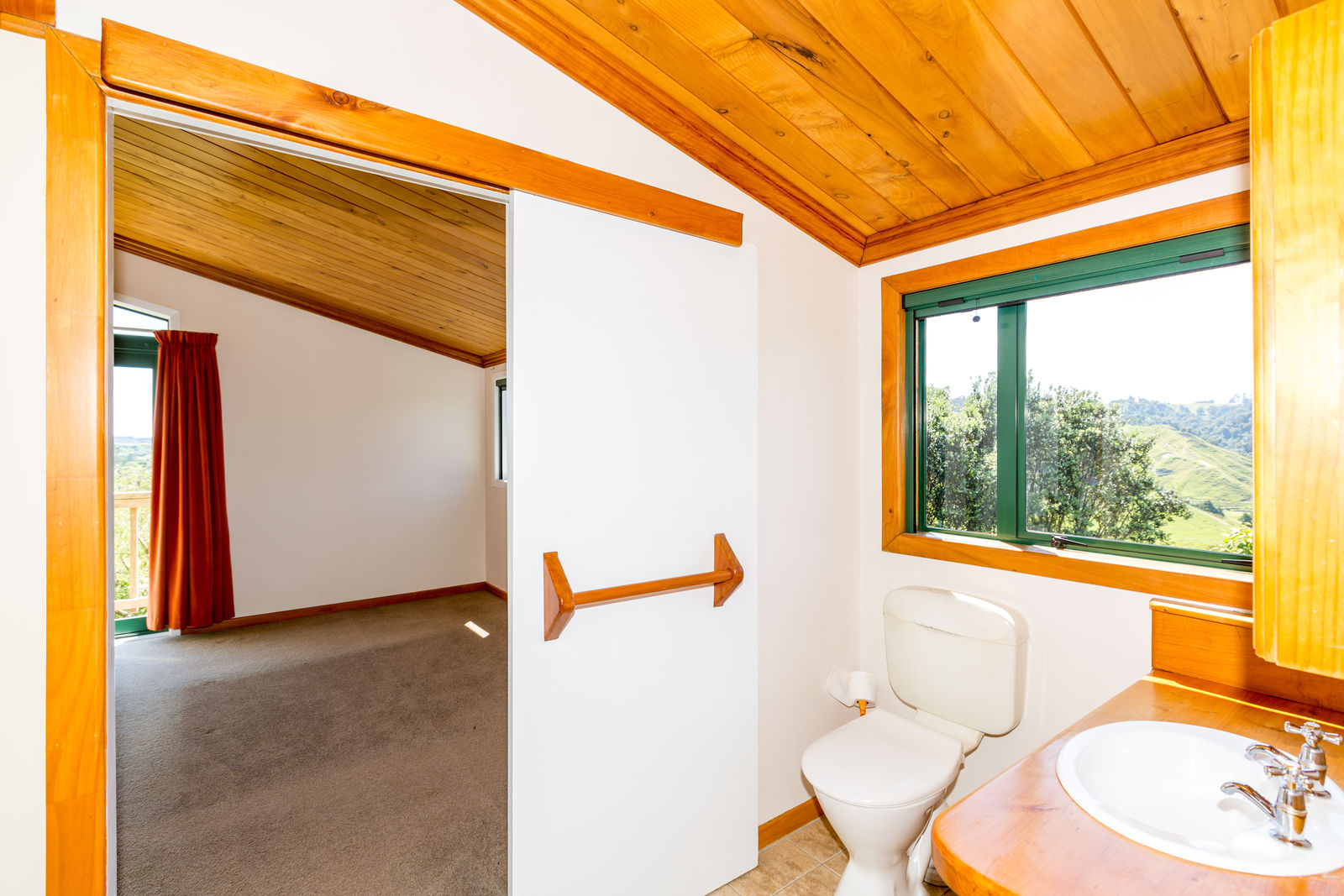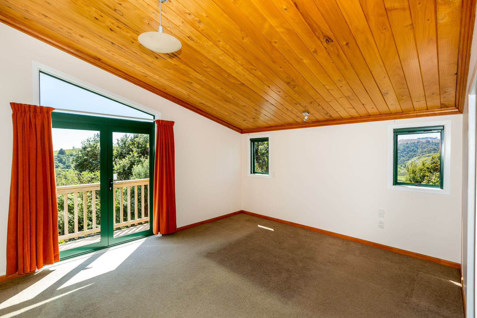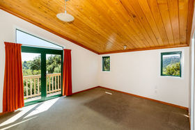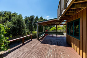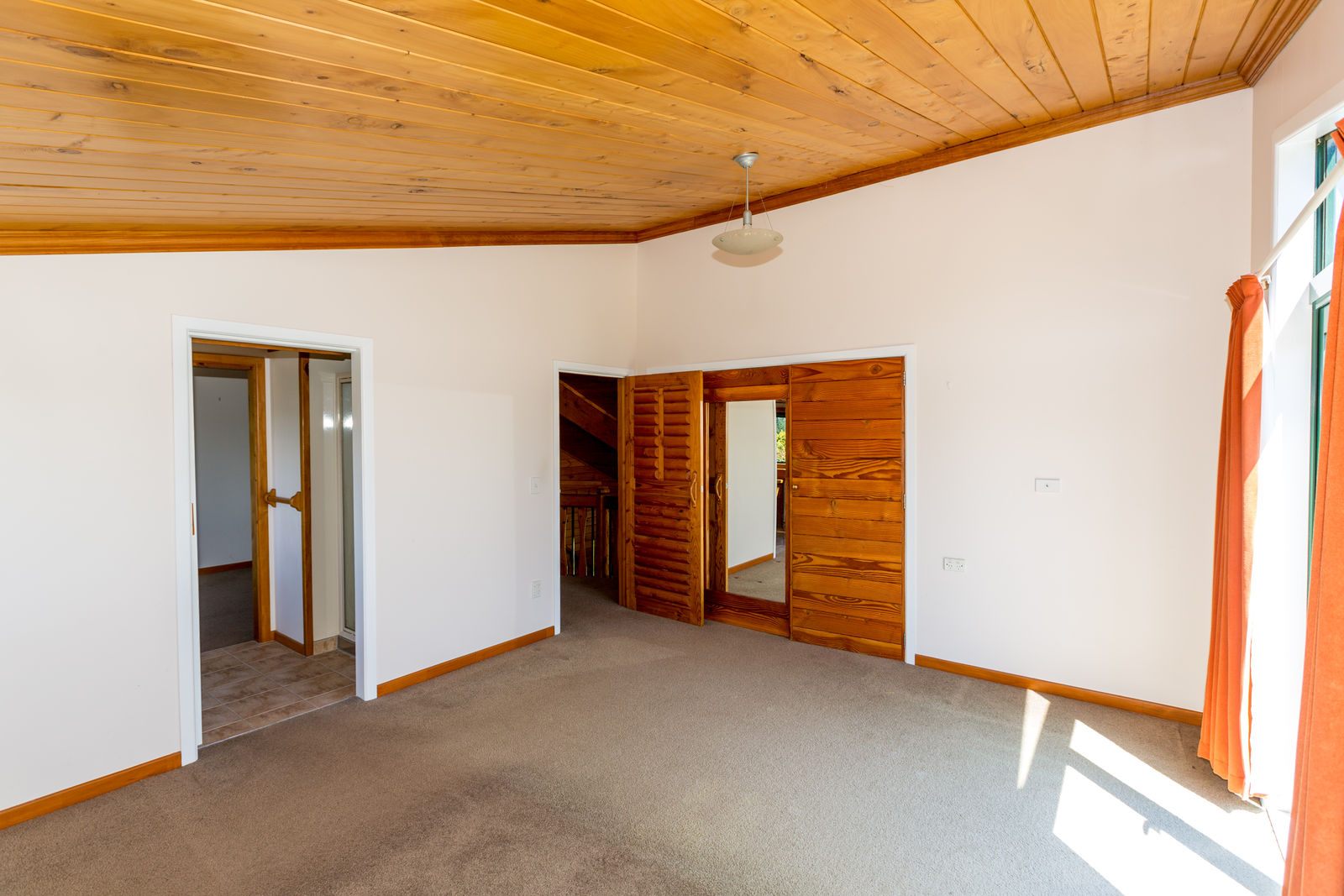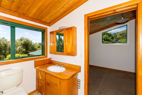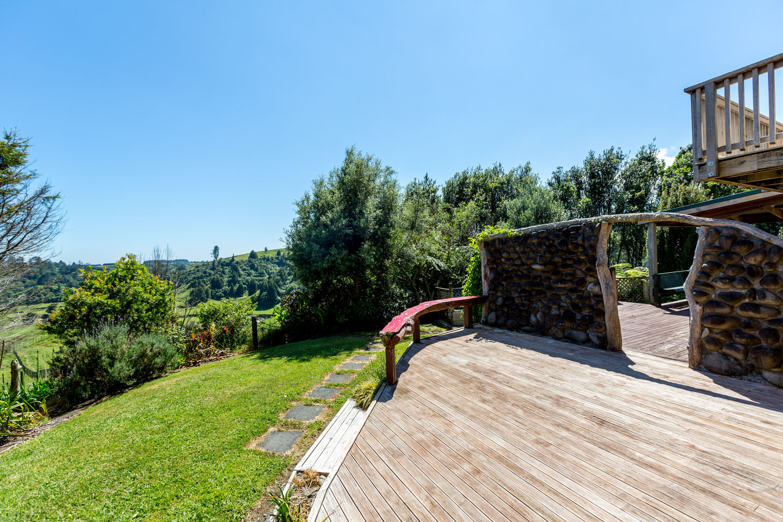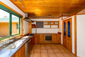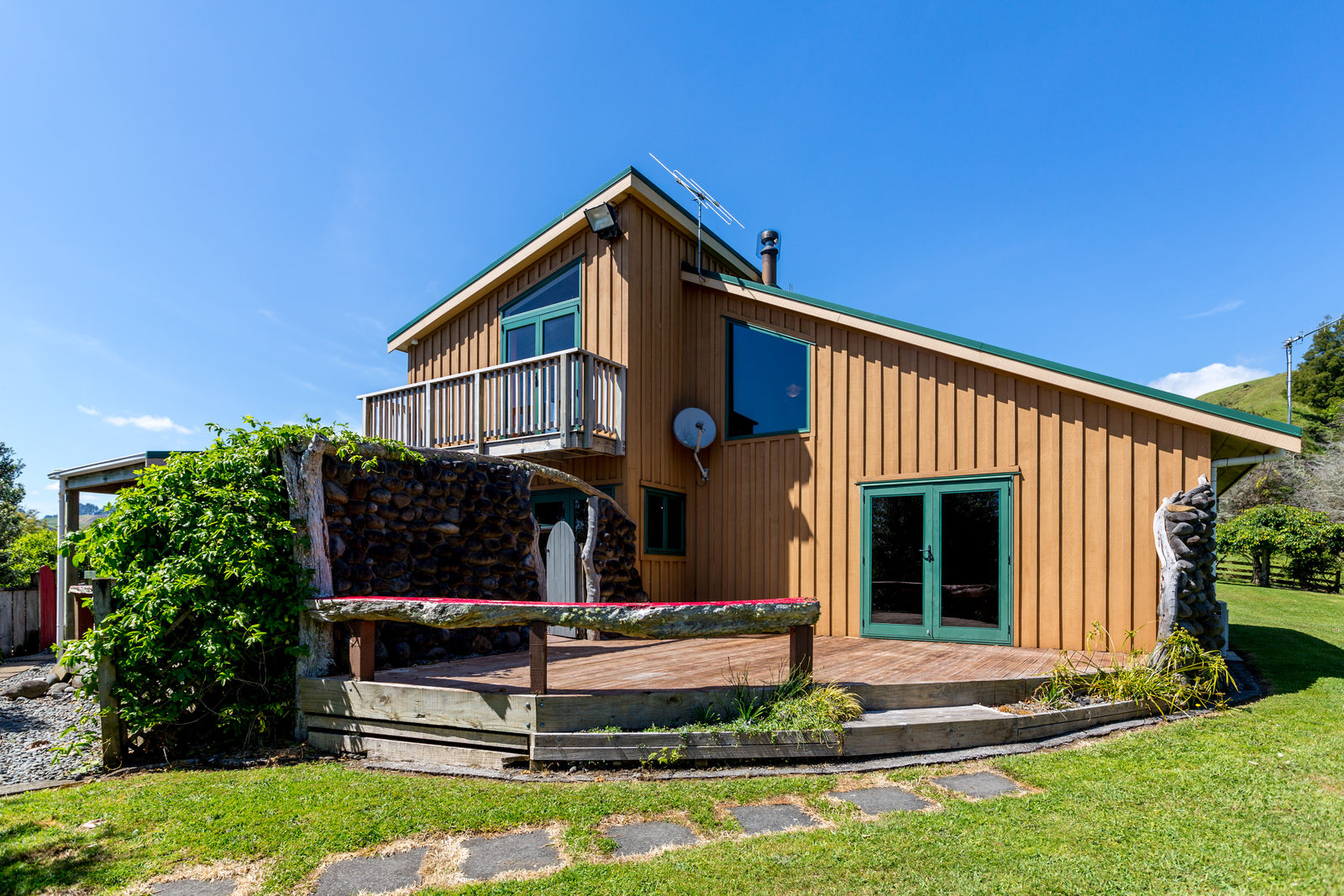 The home, with all its timber finishing, has an impressive staircase leading to the master bedroom and office. Downstairs are three more bedrooms with an open plan kitchen/dining and the lounge straight off that.