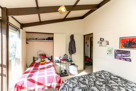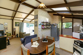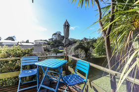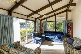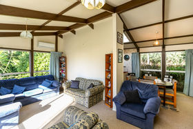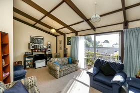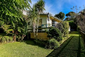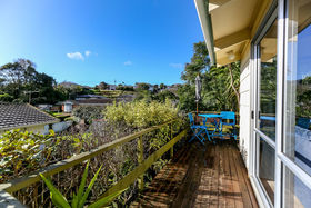 Sun streams in from this private elevated position. Offering three bedrooms, double garage, great off-street parking and easy care section. The spacious open plan living steps out to sunny deck with views of tranquil garden.
