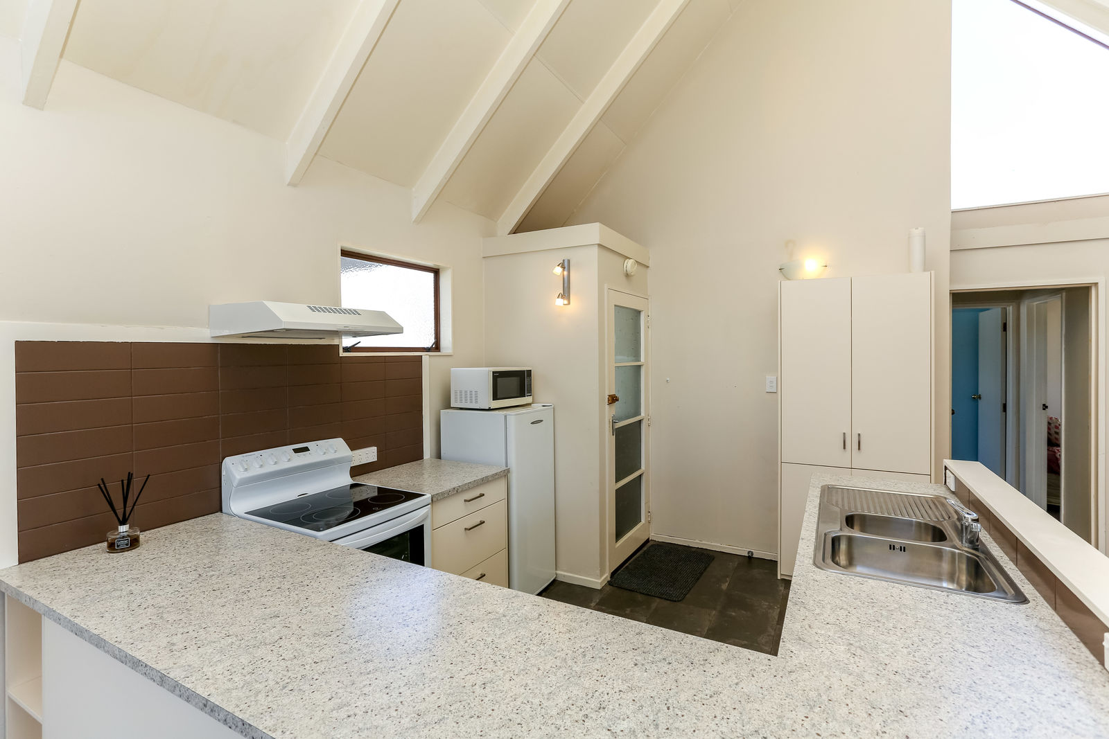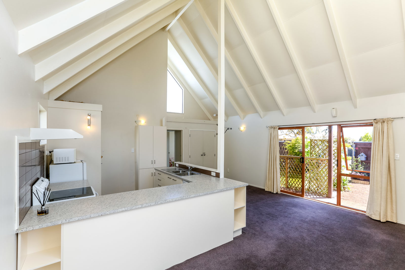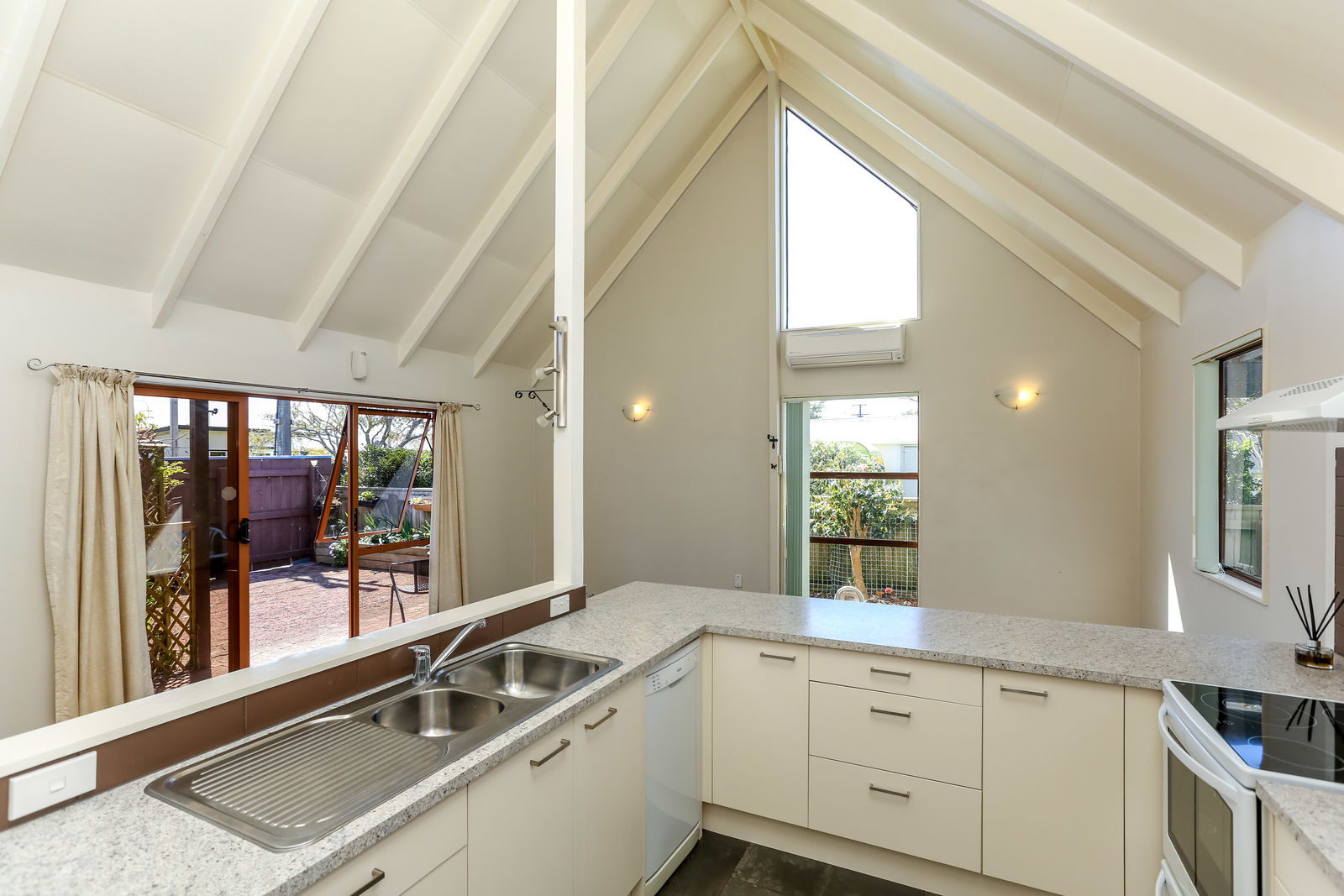 The high-pitched ceilings in the living area give this cosy home a sense of space and airiness with high windows to welcome in the light. While the kitchen and bathroom were updated in 2011 there is still plenty of scope to add your flair and personal touch.