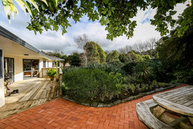 Where else can you find a large family home with 2 acres of lifestyle land just minutes from the Merrilands shopping centre? This unique 1990's home comes to the market for the very first time and combines urban convenience with country ambience in an incredibly private setting. Nestled within established gardens and bush this is a native bird lovers dream. The family have all the room they need to play and explore (like we used to) while you enjoy the tranquillity this idyllic setting provides. A second living area keeps the family happy indoors too while under floor heating and a wood burner easily dispatch the winter chills. Master bedroom comes with en suite and walk in wardrobe, superb indoor/outdoor flow and internal access double garaging completes the snap shot of a picture that must be viewed fully to appreciate this special setting.